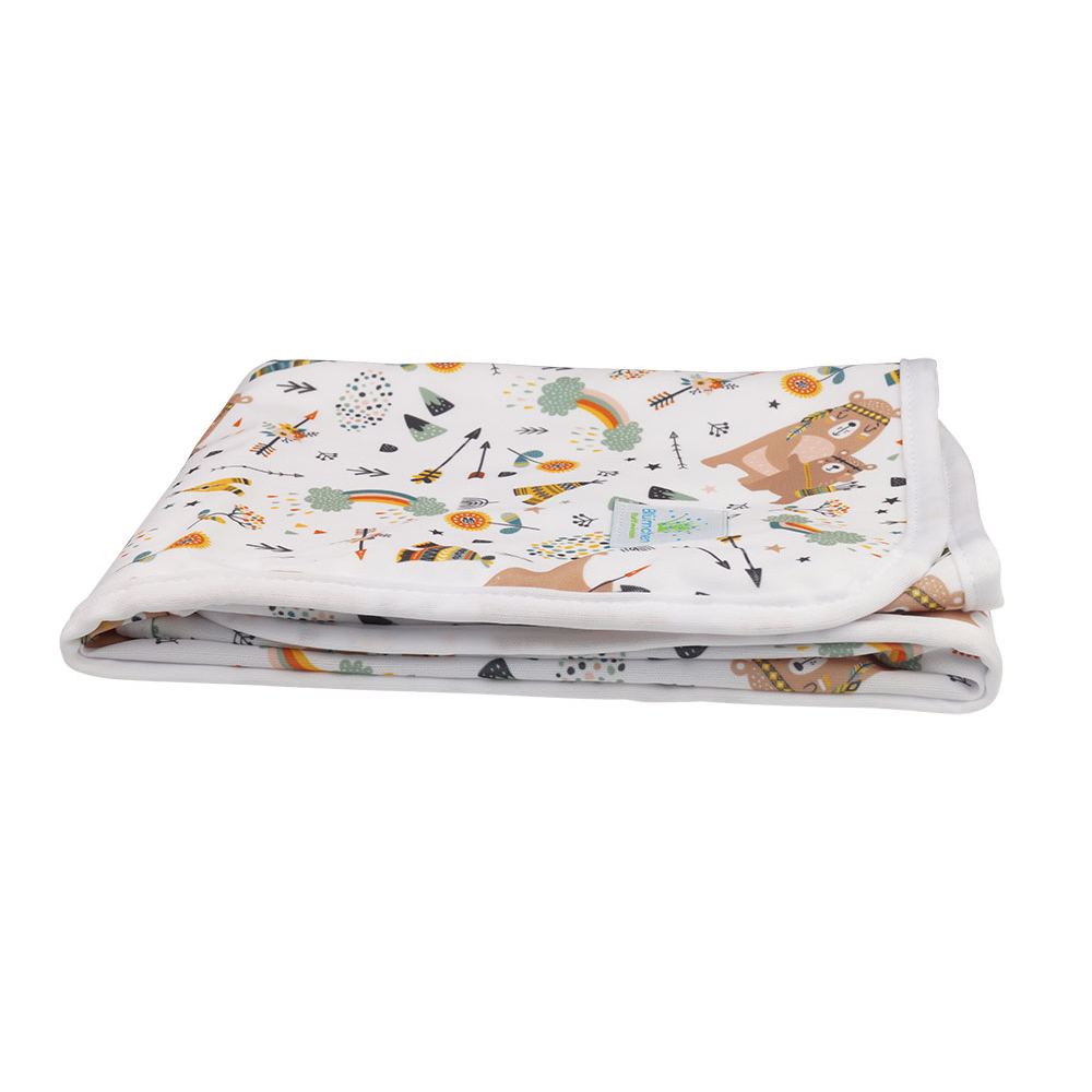 Die Abmaße sind recht großzügig bemessen und mit 48x70cm ist sie schon als kleine Picknickdecke für Kleinkinder oder als Unterlage beim Autofahren geeignet und somit auch über die Wickelzeit hinaus verwendbar. Ein weiteres Highlight ist, dass die Unterlage durch die integrierte PUL-Schicht absolut wasserdicht ist. So kannst du deinen kleinen Schatz auch auf der Wiese wickeln ohne Angst für Bodenfeuchte zu haben.
