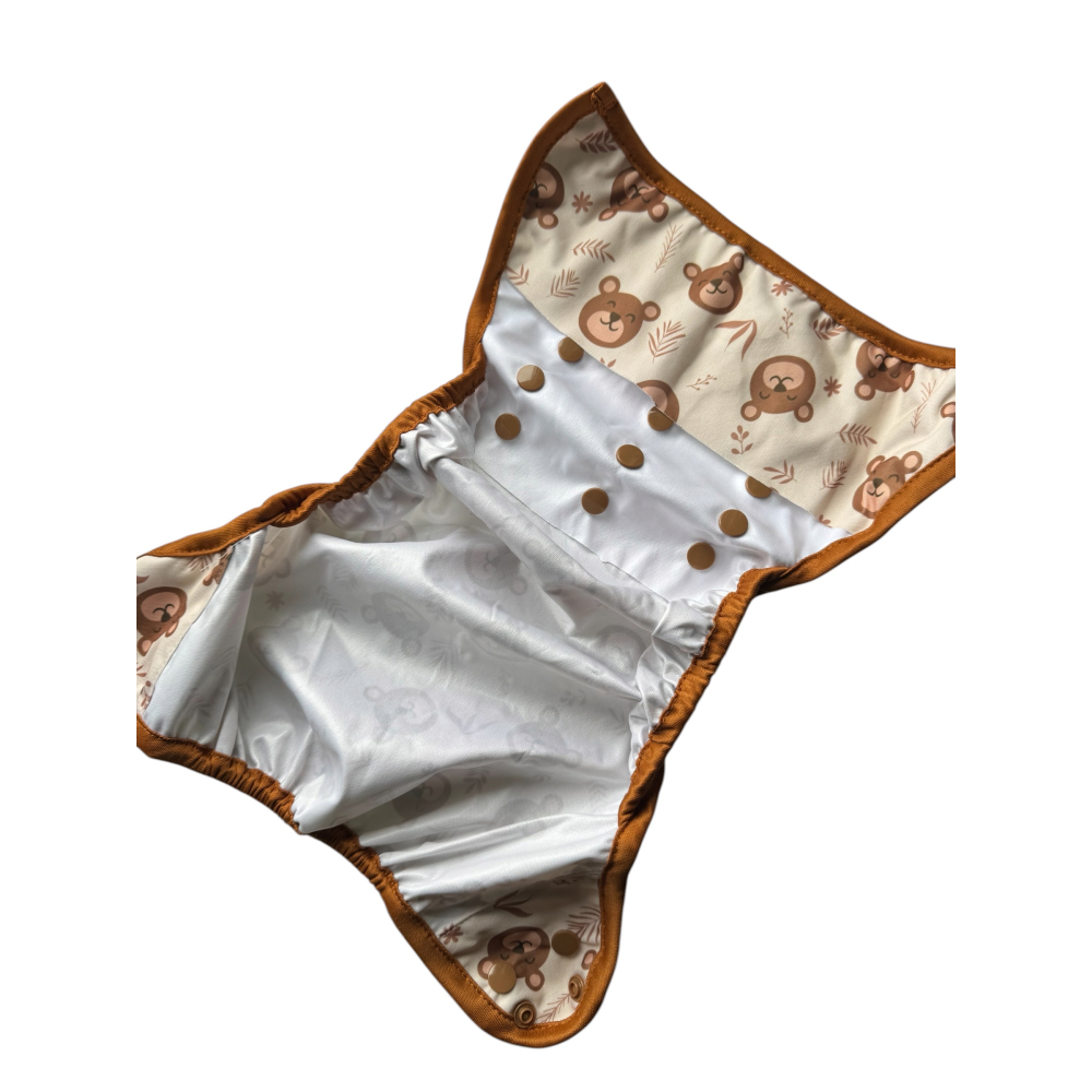 Die Überhose ist großzügig geschnitten und passt so lange, bis dein Kind komplett trocken ist. Ebenfalls ermöglicht der Schnitt eine individuelle Anpassung der Windel an die Bedürfnisse deines Kindes. Tagsüber, mit weniger Saugmaterial, kann die Windel etwas enger eingestellt werden und in der Nacht kann eine Höschenwindel oder ein Booster (Extraeinlage) zusätzlich verwendet werden, ohne dass es am Bauch einschneidet.